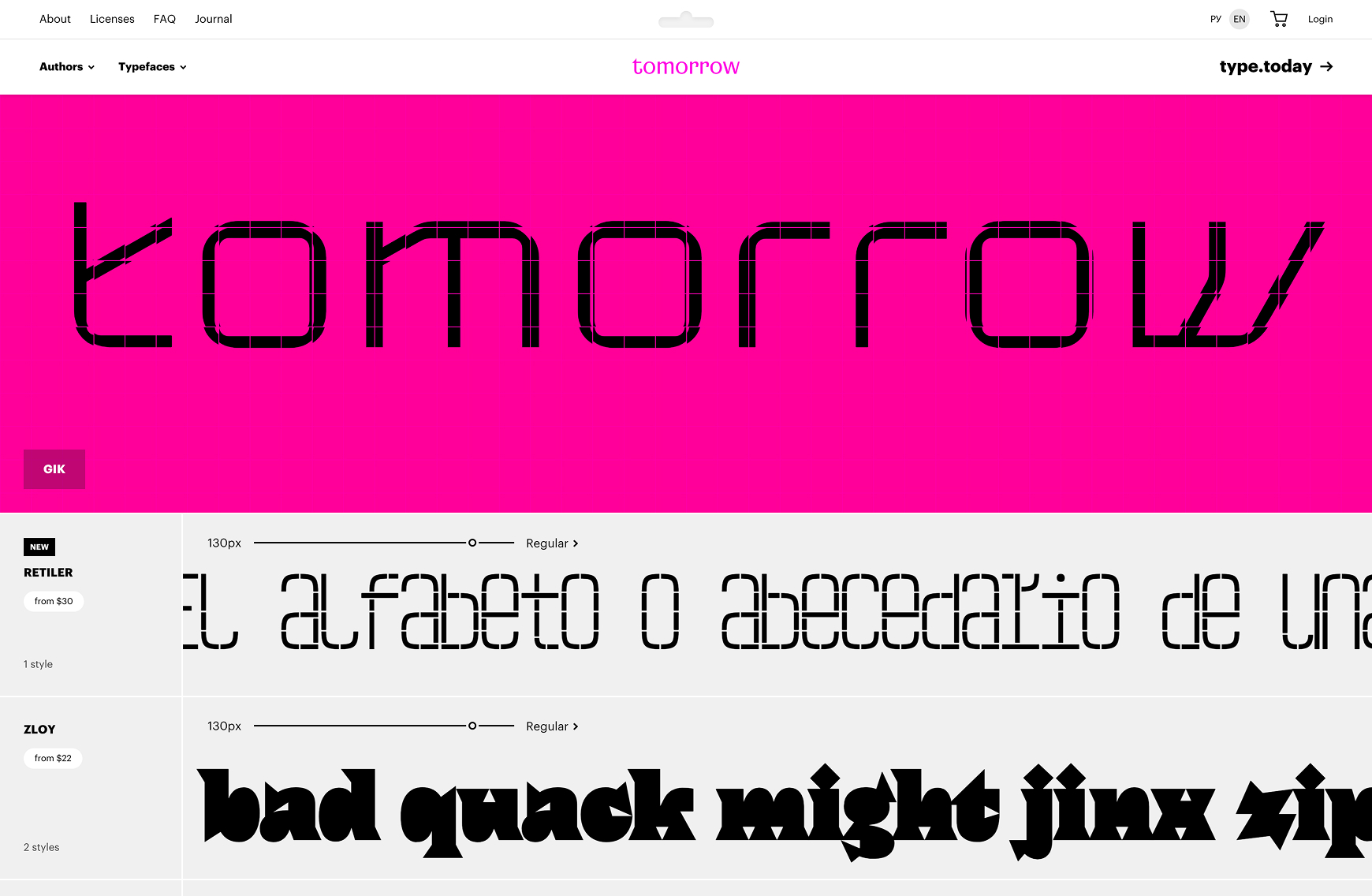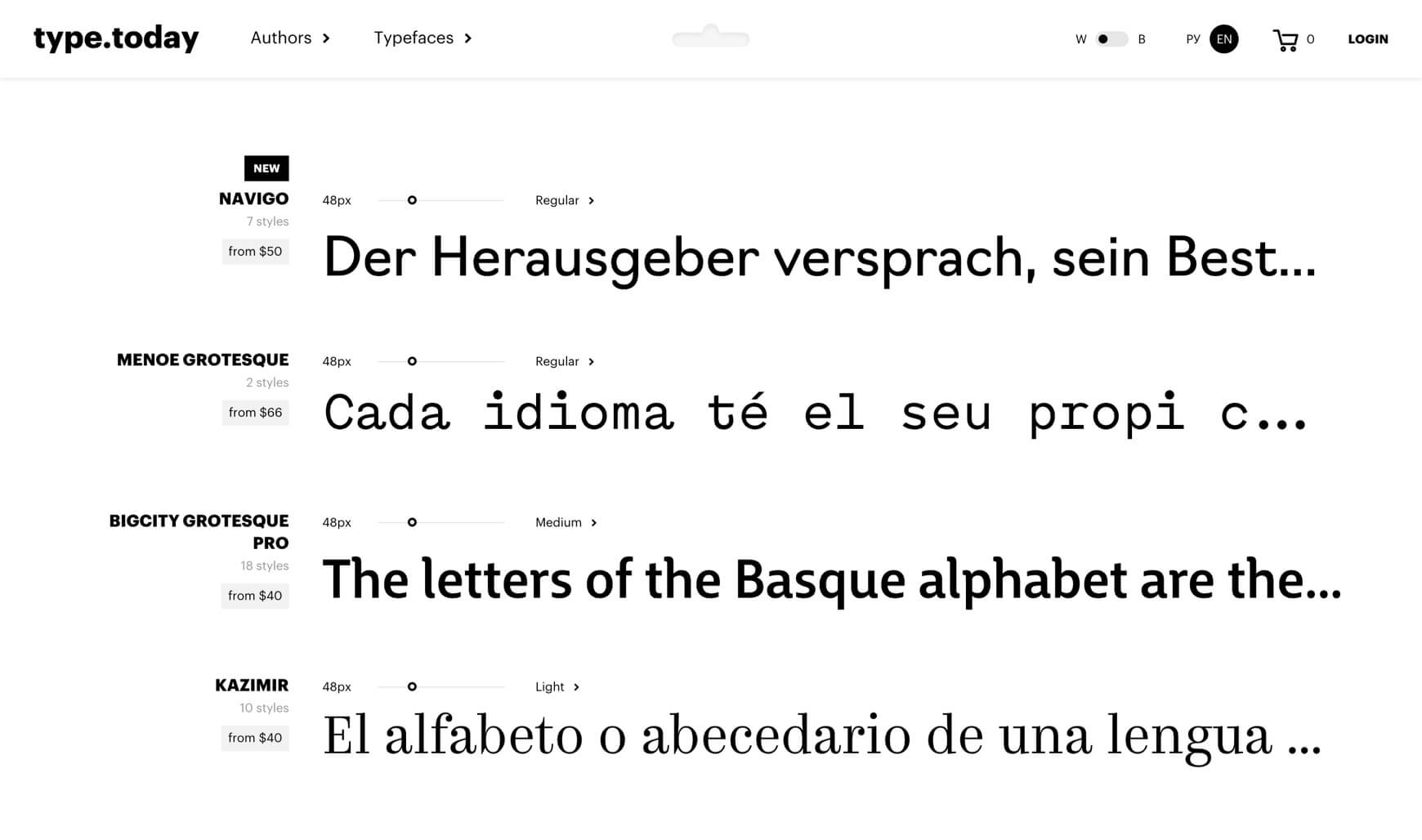 Founders:"Working with the agency is a blast. It is a pleasure to communicate, to overcome obstacles together. They participate in our project with sincere empathy, not only regarding their part, but our own business goals as well. Without their talent and skills, type.today would never have happened, or at least it wouldn’t be as solid and easy to use".- client: type.todayproject: Font distribution platformdesign: Pete Sutupovclient: type.todayproject: Font distribution platformdesign: Pete Sutupov